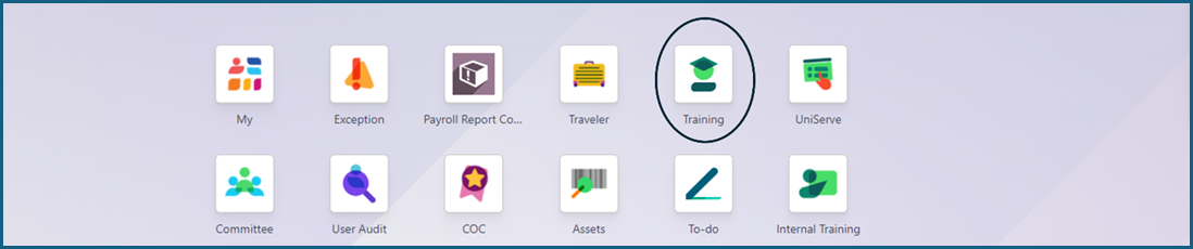 To access the module, click on the training icon on the main menu screen, as illustrated in the image below