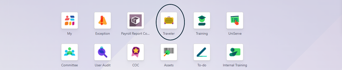 To access the module, click on the Traveler icon on the main menu screen, as illustrated in the image below