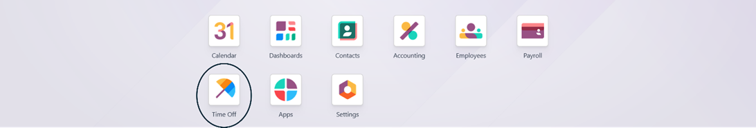 To access the module, click on the Time Off icon on the main menu screen, as illustrated in the image below