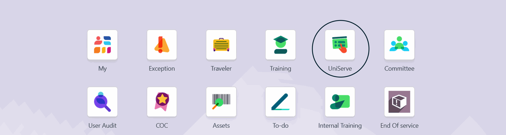 To access the Education Allowance request page, click on the "UniServe" module icon from the main menu screen