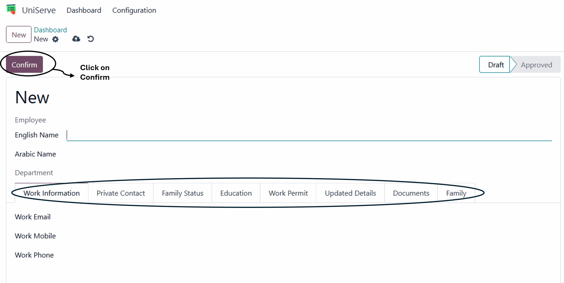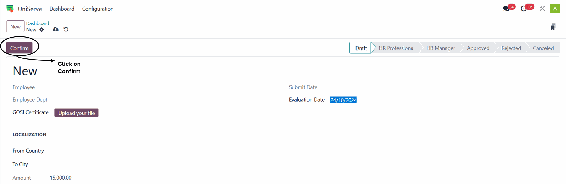 Then, fill in all the fields and click "Confirm” to submit the record for approval