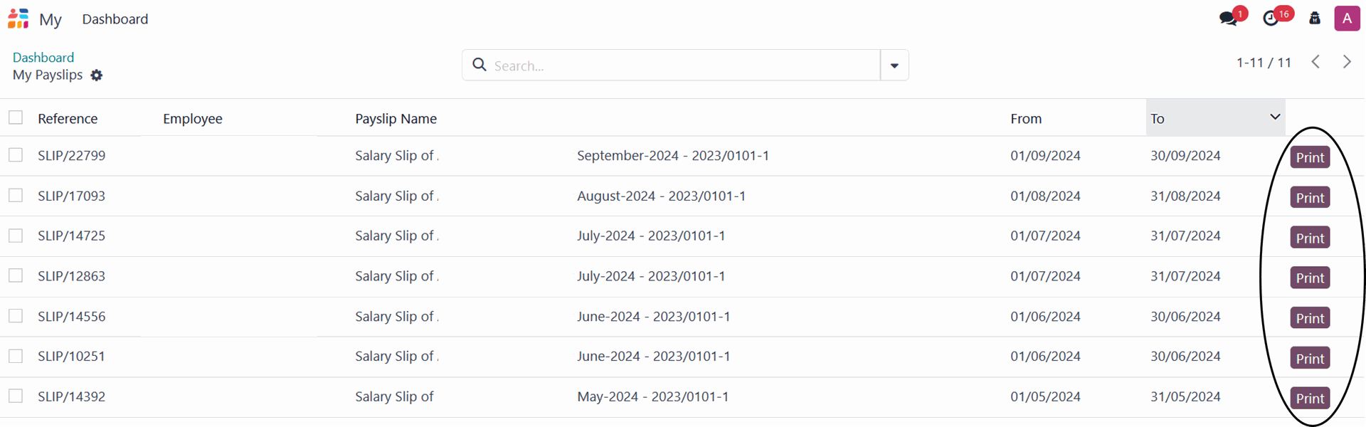 To access the Payslips page, click on the "Payslips" module icon from the main menu screen